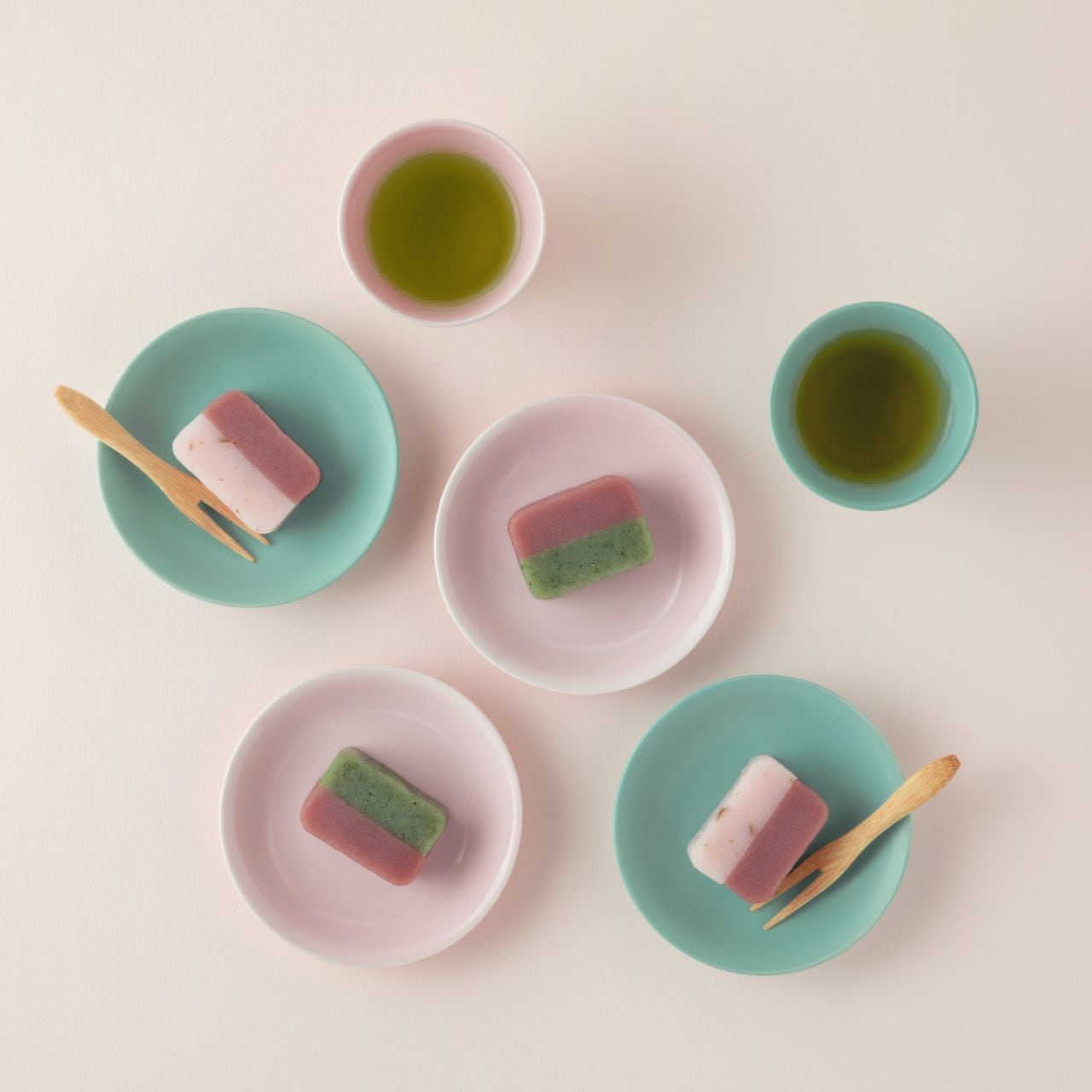 桜葉香る桜ういろとないろの2層仕立ての「さくら餅」、風味豊かな蓬ういろとないろの2層仕立ての「よもぎ餅」をもっちりと蒸しあげました。